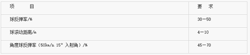 体育用人造草的技术要求,如:规格尺寸及偏差、外观、物理机械性能渗水性、阻燃性、摩擦系数、环保要求、耐酸碱性、耐有机物性、耐光化性、草丝磨损量等要符合国家标准GB/T20394—2006规定的有关要求。