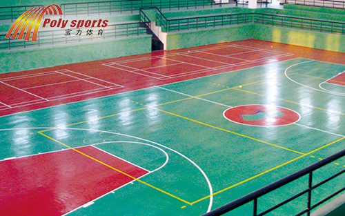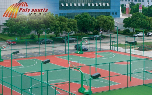 篮球场施工厂家宝力体育的硅pu球场施工方案使用与室内、外篮球场、网球场、羽毛球场和乒乓球场地面铺设,施工工序:基面处理→铺设弹性层→铺设加强层→铺设耐磨面层→划线→清场完工。