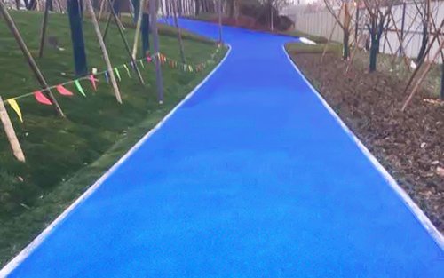 3. 施工方法:将罩面剂混合搅拌,用辊筒均匀涂布在彩色骨料层表面,保养一周即可使用